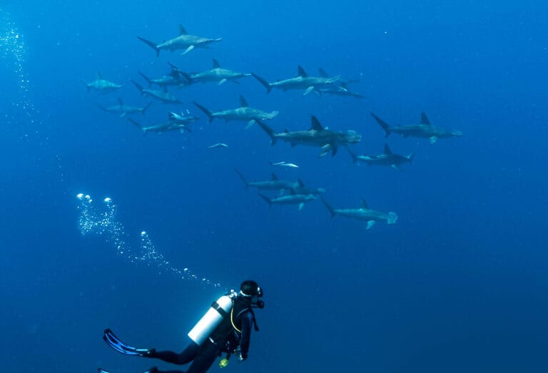 Gordo Banks is Baja’s most iconic pelagic dive site — a pair of deep offshore seamounts that rise from the seafloor to within recreational diving limits. Located just off the coast of San José del Cabo, these underwater pinnacles attract hammerheads, silky sharks, tuna, and more. It’s an advanced dive with potentially big rewards for those ready to drift into the blue.